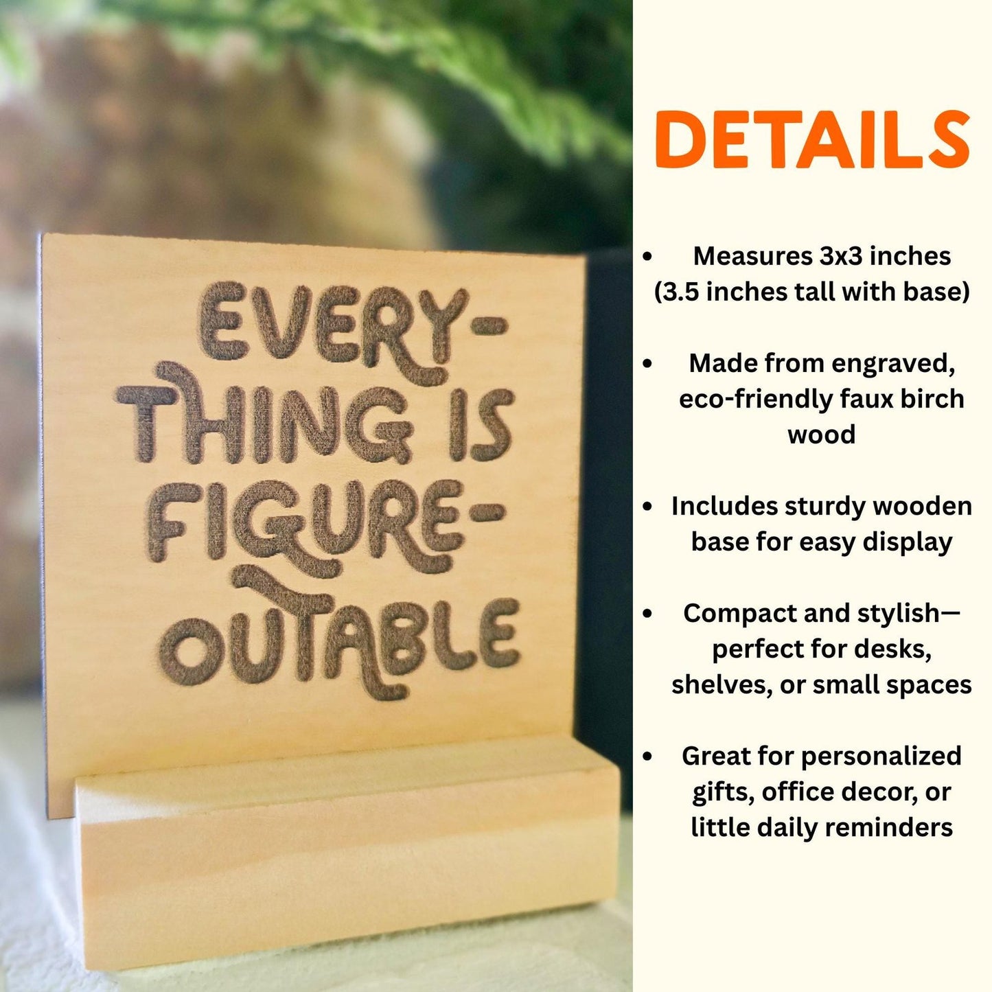 ๐ฟย Materials: Laser-engraved eco-friendly faux birch wood with removable display base