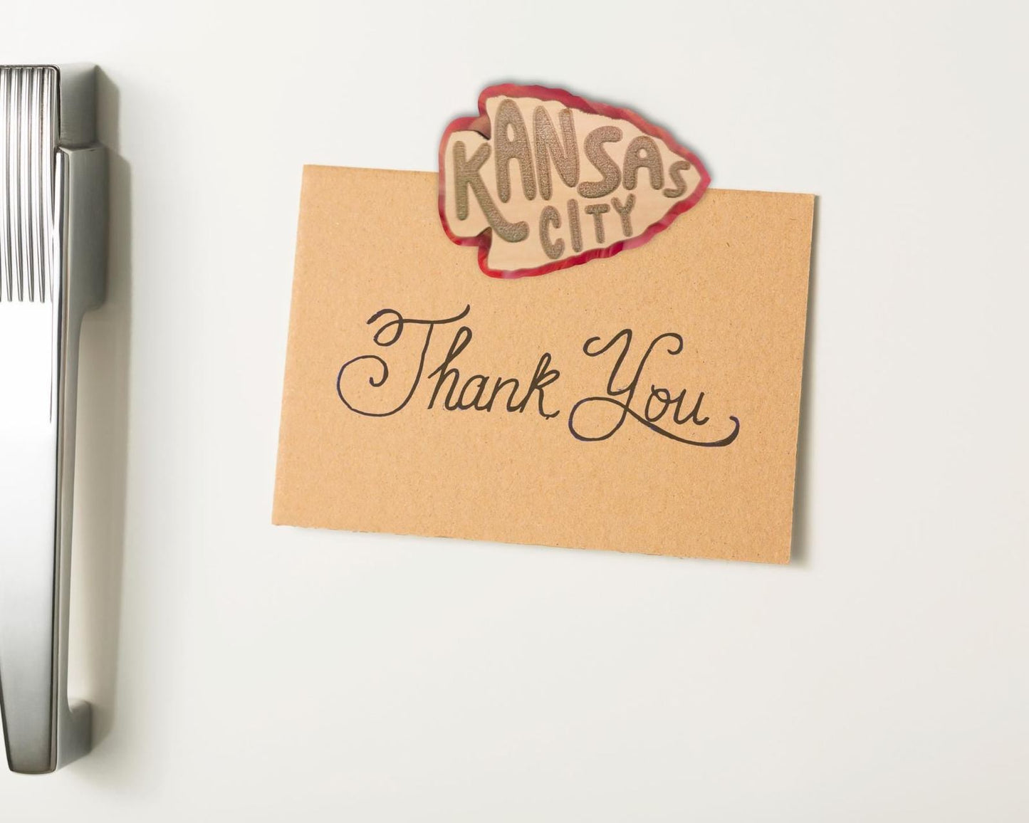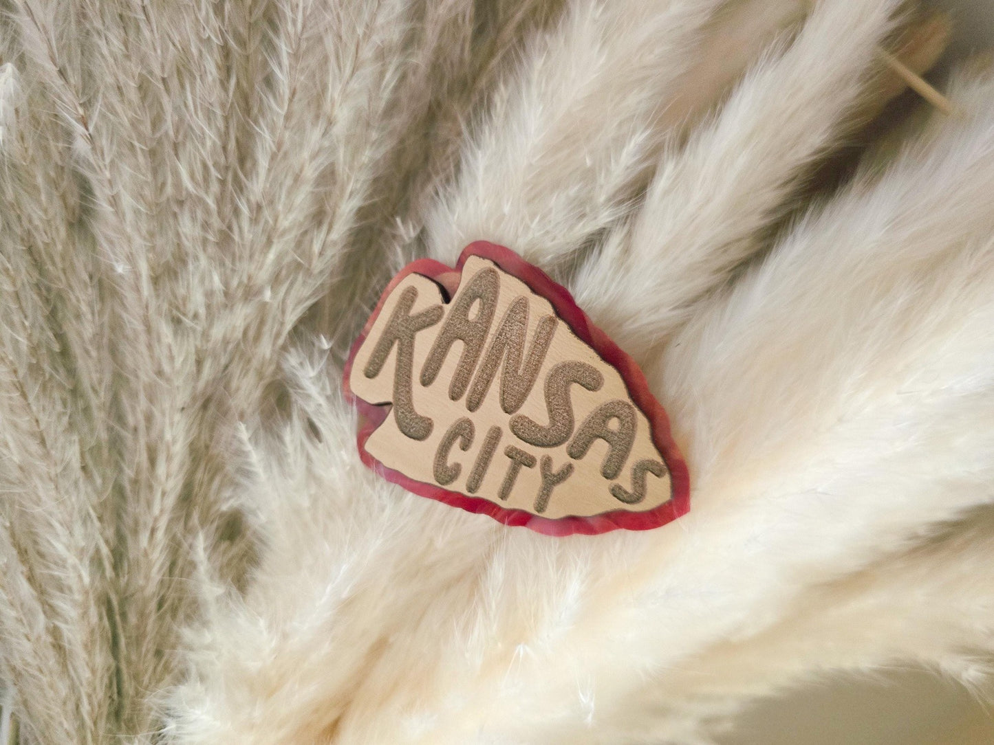 Show off your Kansas City pride with this handmade arrowhead-shaped magnet! Inspired by the cityโs iconic football spirit, this magnet features layered wood and red acrylic with engraved Kansas City lettering that pops with personality.