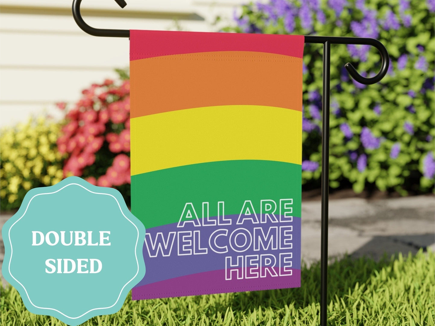 All Are Welcome Here Rainbow Pride Flag