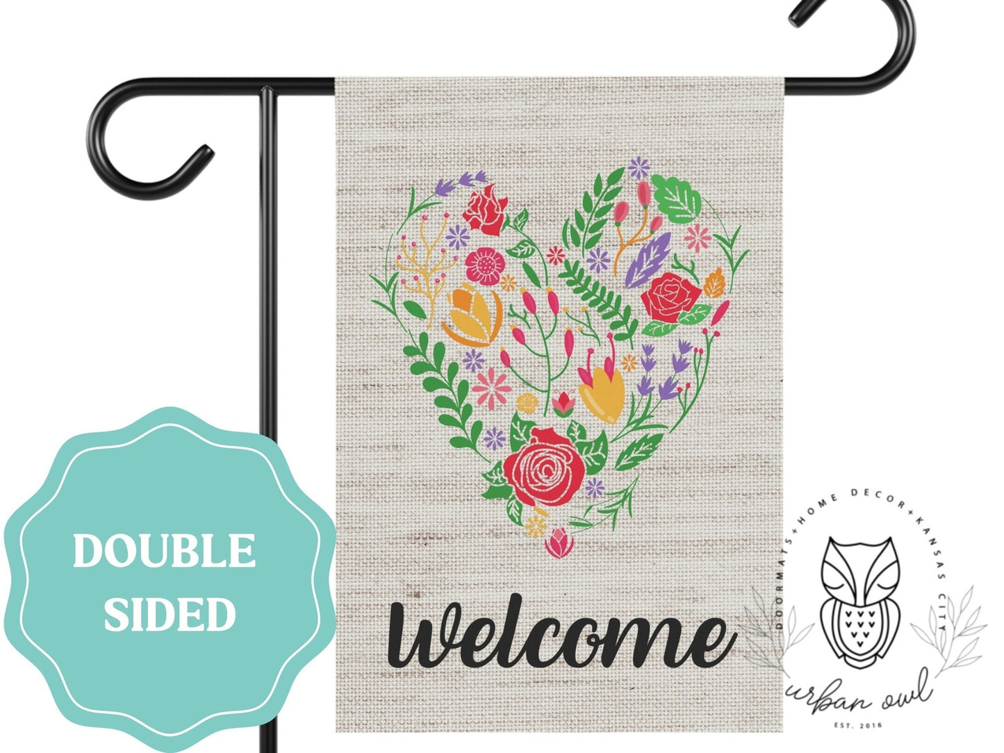 Floral Heart Welcome Valentine's Day Garden Flag