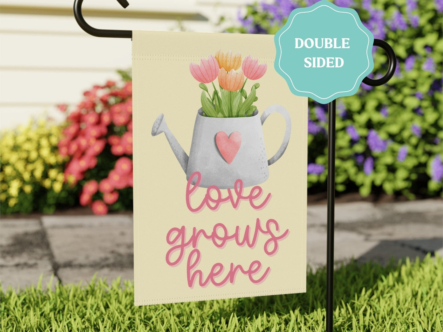 Love Grows Here Double Sided Garden Flag