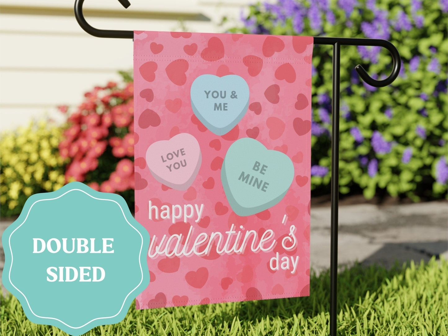 Happy Valentine's Day Candy Heart Garden Flag