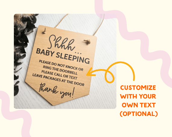 Our Shhh...Baby Sleeping front door engraved wooden sign is the perfect way to politely let visitors know to keep the noise down at the front door.